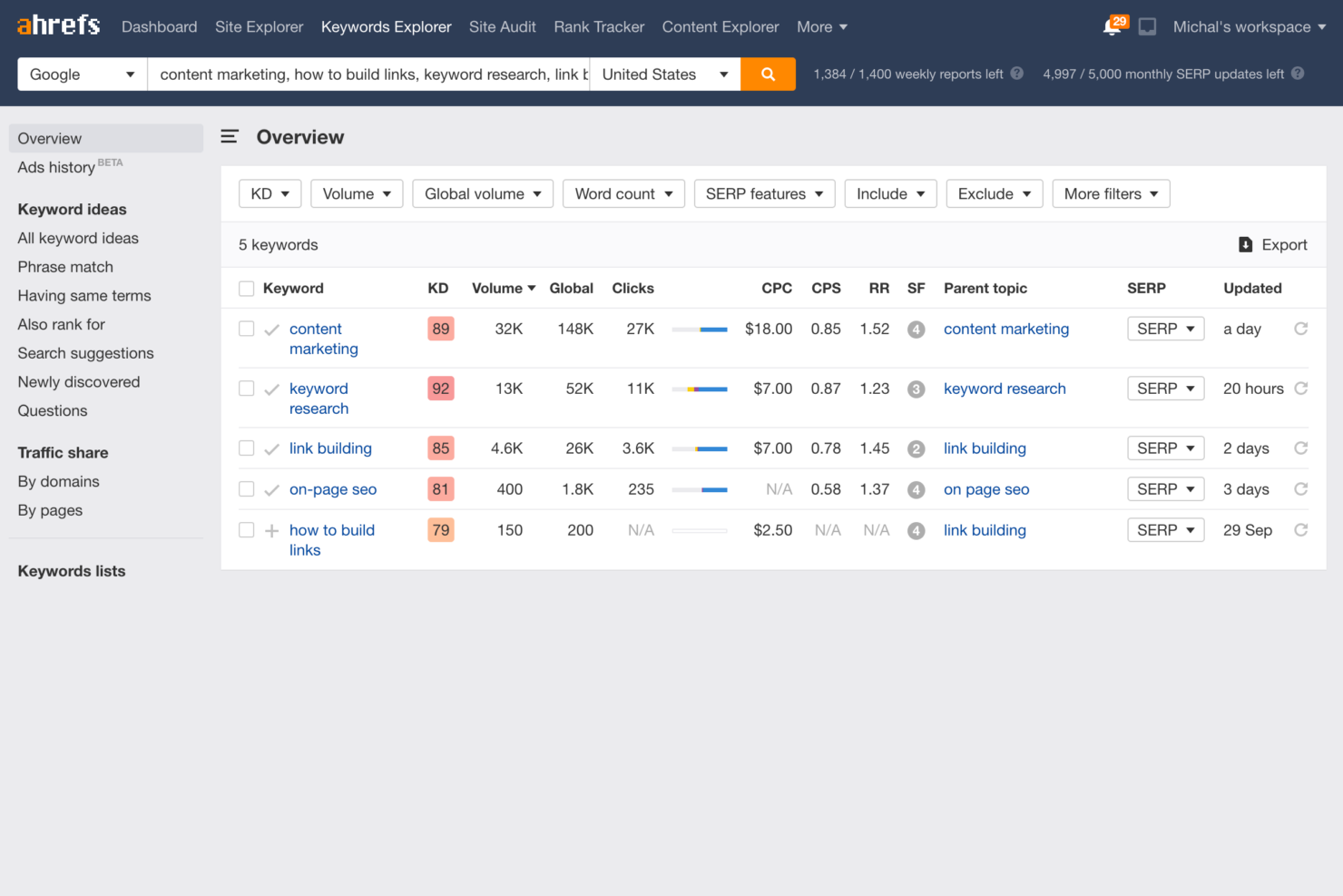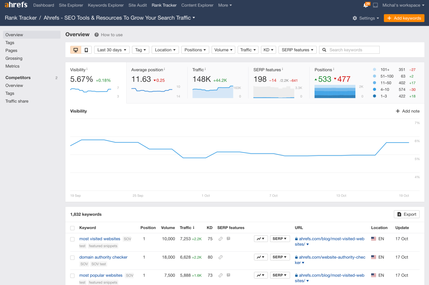 - Ahrefs gives you accurate keyword data and traffic estimates.